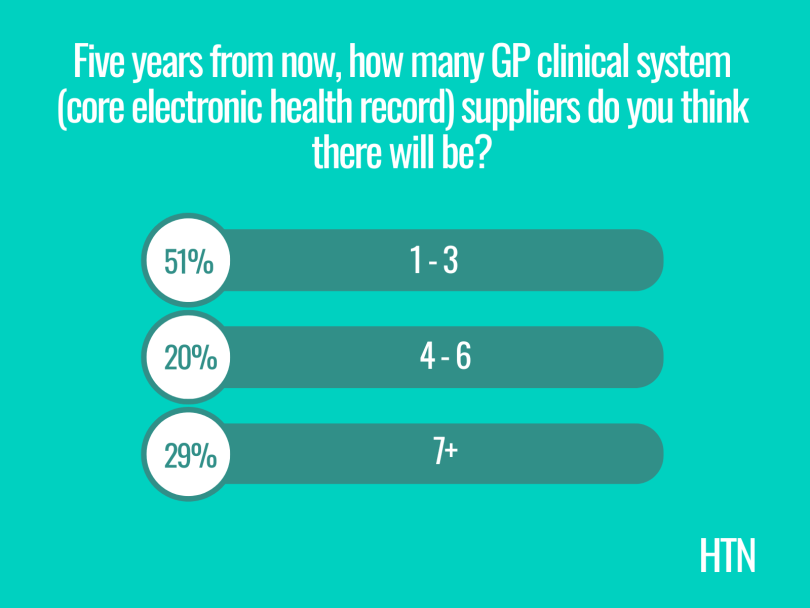 How many GP clinical system suppliers do you expect to see in five years’ time? Click here to follow HTN on LinkedIn for the opportunity to take part in future polls.