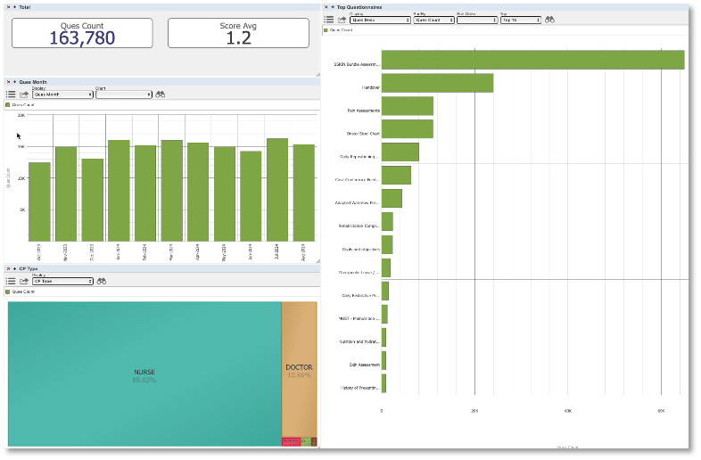 Figures 1 and 2 provide example illustrations taken from a library of solution adoption dashboards that enable an on-demand detailed analysis of solution usage in terms of discreet volumes, trends, workflows, activity, and persona profiles.